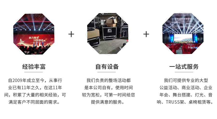 合肥東君廣告?zhèn)髅接邢薰?/span>,主要從事專業(yè)開工奠基、開業(yè)剪彩、新車發(fā)布會,會展會議布置、大型公益活動、開幕閉幕、店慶校慶、房產(chǎn)開盤、商業(yè)活動、運動會、企業(yè)年會;節(jié)目演繹,舞臺搭建、燈光,音響、TRUSS架、桌椅租賃等各類活動物料租賃。我們?yōu)闈M足客戶不同層面的需求,憑借良好的管理體系和信用口碑、廣泛的社會合作關(guān)系體系及強有力的后備資源、多方面的配套服務(wù)隊伍、擁有先進的活動設(shè)備和經(jīng)驗豐富的策劃設(shè)計人員,為客戶提供一站式的服務(wù)平臺。歡迎您來電咨詢:189-5602-4601(張總)